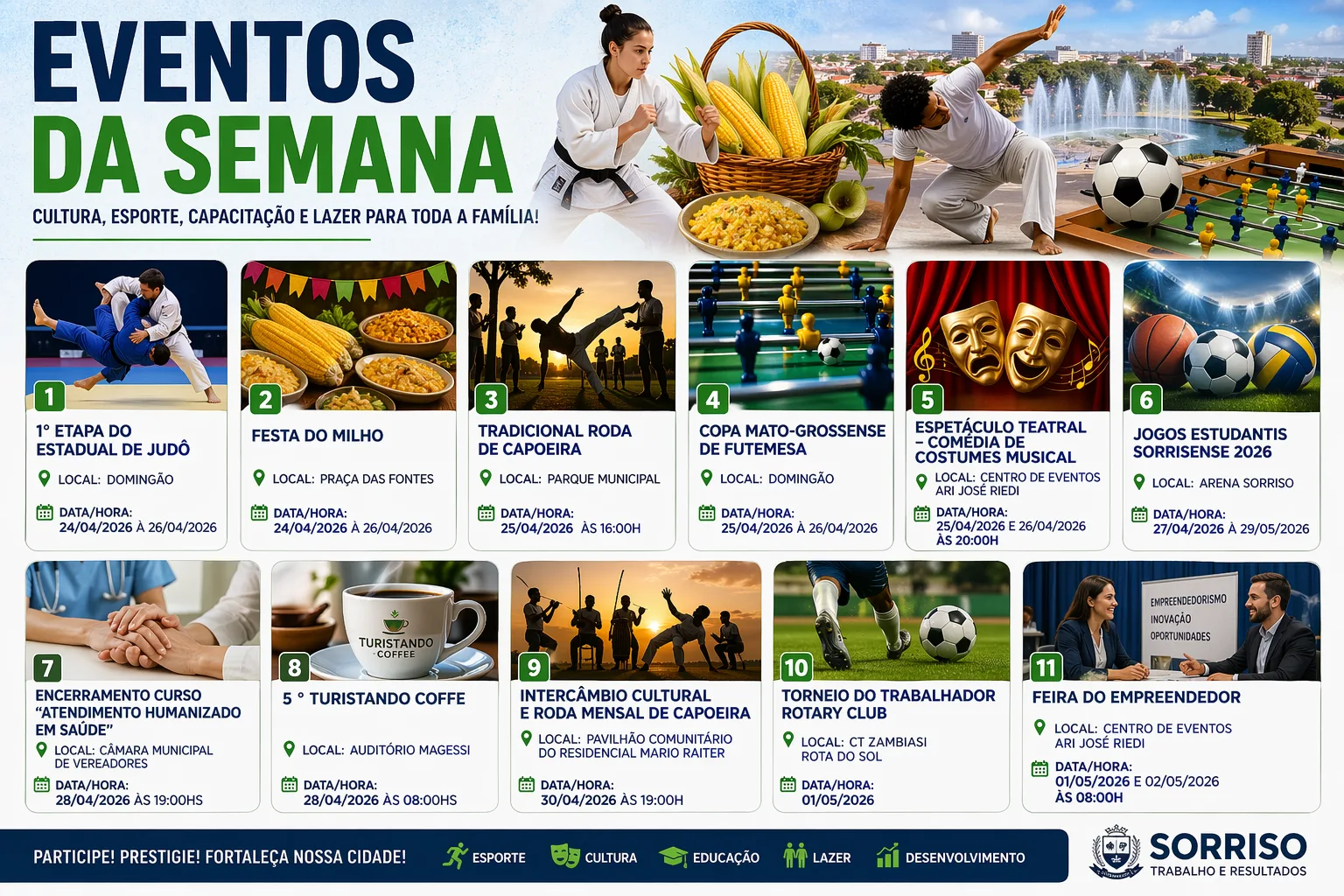 • Sorriso terá fim de semana e início de semana seguinte repletos de eventos esportivos, culturais e comunitários