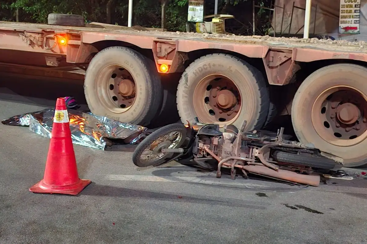 Após a batida, o motociclista caiu e foi atingido pelos eixos do veículo, morrendo no local.