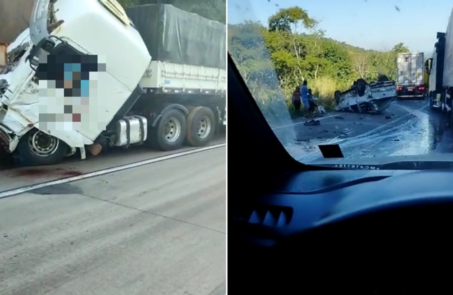 Motorista morre preso às ferragens em acidente entre 3 carretas e uma caminhonete na BR-364
