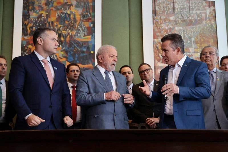 Foto: Mayke Toscano/Secom-MT Ao lado do presidente Lula (PT) e membros da bancada federal de…