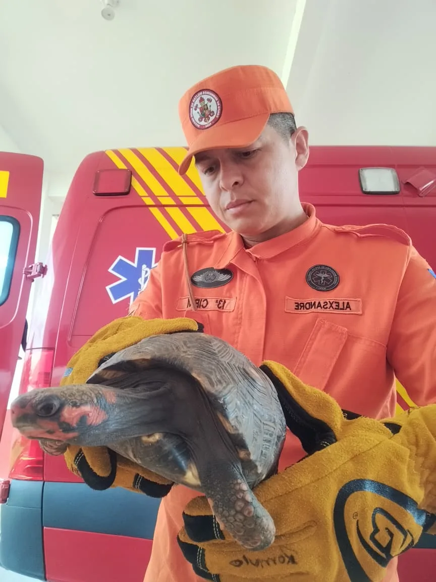Corpo de Bombeiros realiza resgate e soltura de jabuti-vermelho em área de preservação