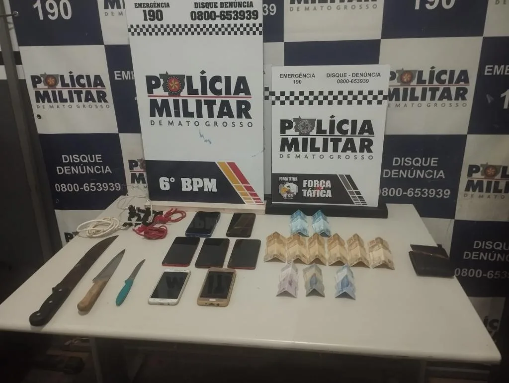 Dentro do imóvel, também foram encontrados e apreendidos celulares, facas e a quantia de mais de R$ 500,00 em dinheiro.